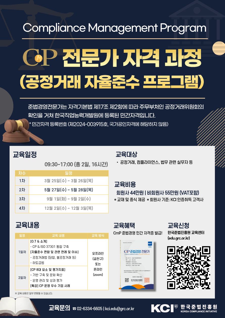 회사의 준법통제기준상 기업윤리에 관한 의무사항에 대하여전문성 있는 교육훈련을 제공합니다.